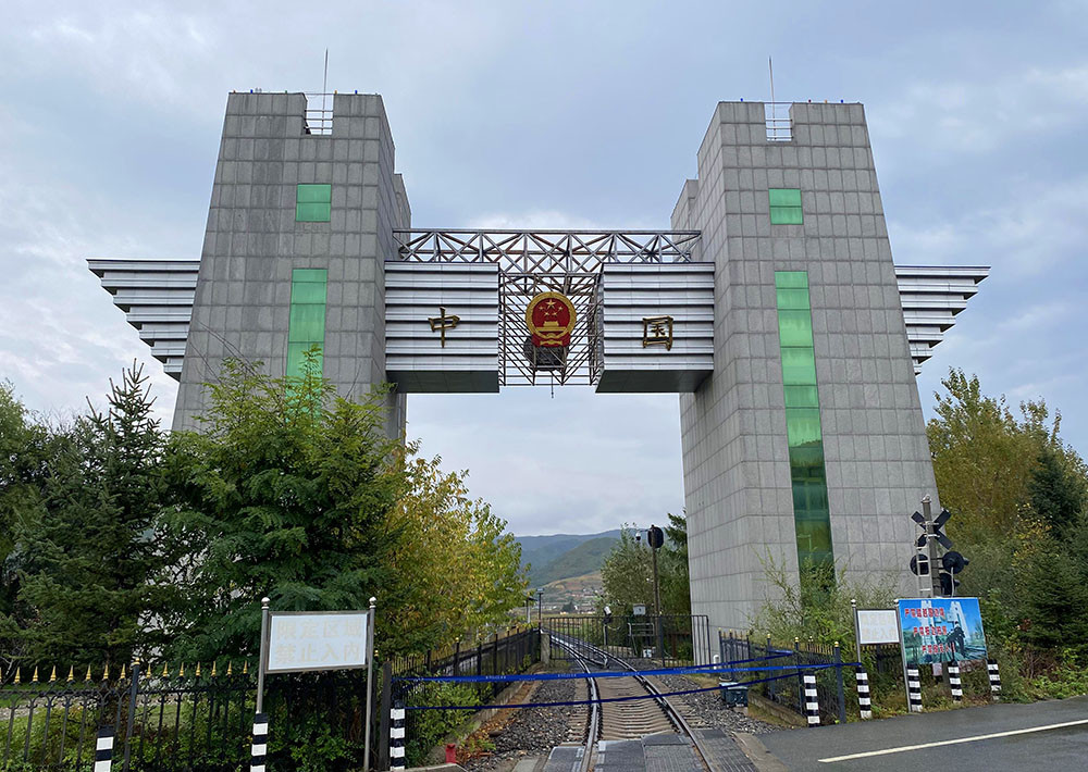 继续前行,不远就是那座铁路国门,看起来更加高大漂亮,停车小歇,正式打卡。