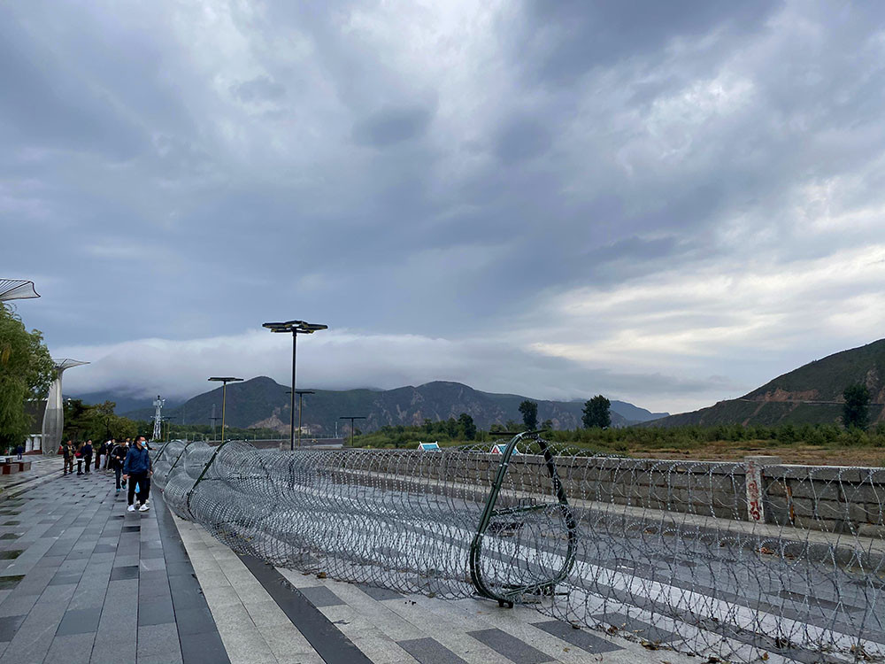 穿过图们江畔的广场,沿着滨江公园前行,江边还停泊着船样的餐厅,原来是可以在那里就餐的,现在因为疫情的缘故,高大的铁丝网把图们江隔离开来了。