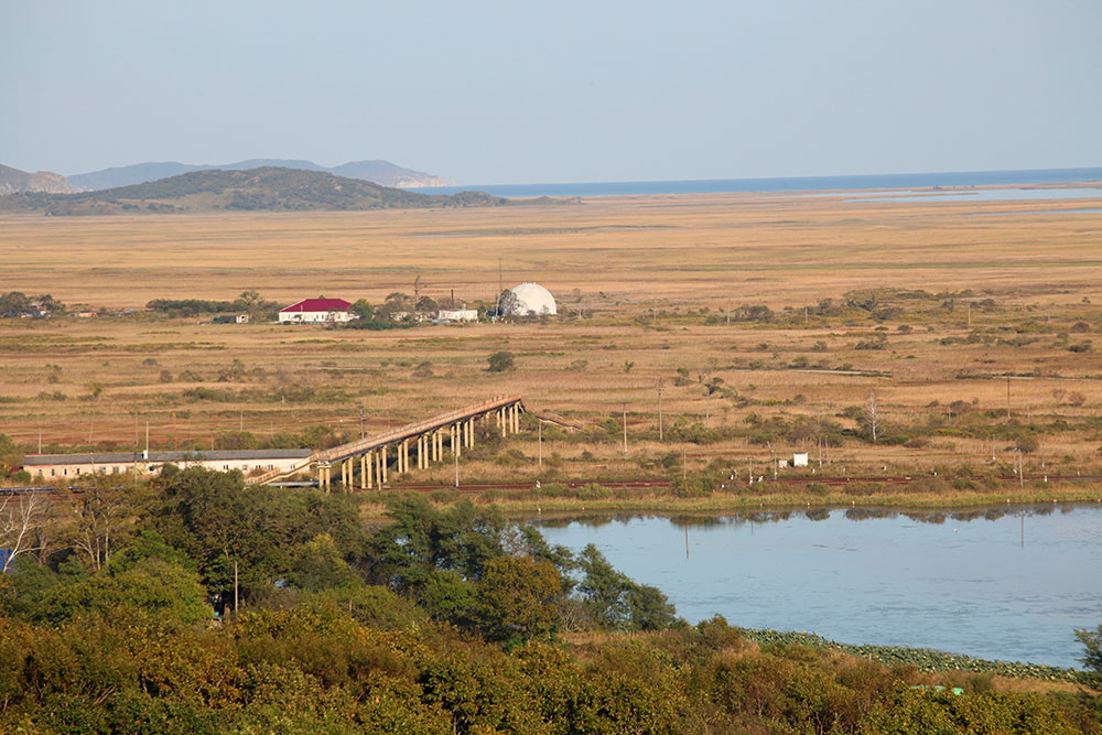 脚下密密的丛林里,有一条铁丝网隐约可见,那就是中国和俄罗斯的国界线。 俄罗斯一方的村庄叫做包得哥尔那亚,站在龙虎阁上,俄方圆顶的雷达站,高高的瞭望哨,都看得清清楚楚。