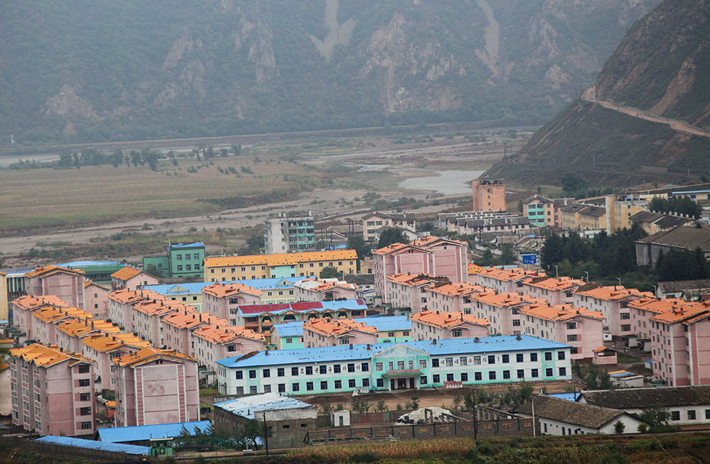 朝鲜一侧的老村庄旁新修建了 不少楼房,听当地老乡说,那都是中国援建的,由于朝鲜缺电,夜晚至今还是漆黑一片。