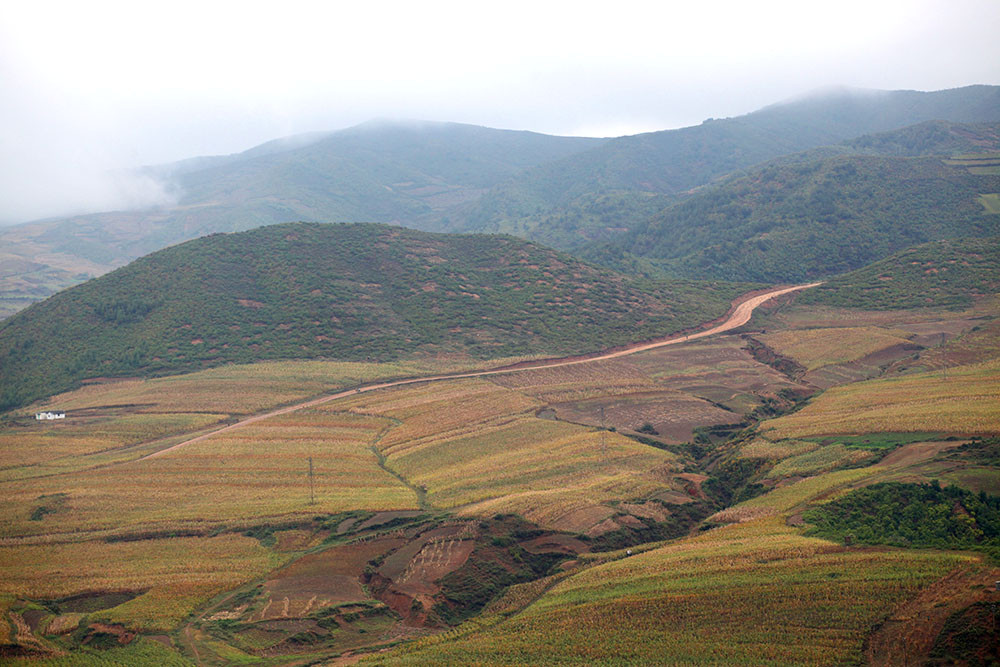 站到山崖边上的观景台上,图们江变成了一条细流,山川、河流、牧场、农田,构成了一幅幅原始状态的田野图画。