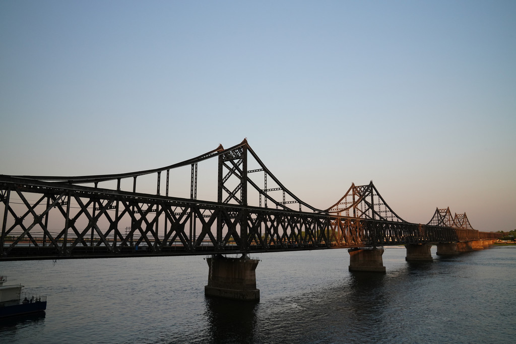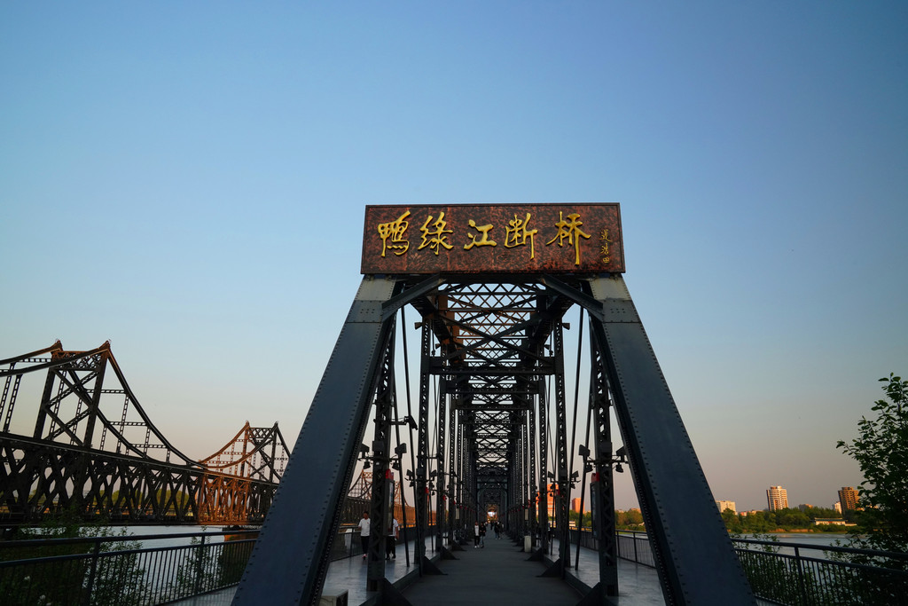 ★第3座断桥:鸭绿江断桥:18:00-18:30。丹东的鸭绿江断桥:钢制开闭桥梁。被炸毁后,朝方拆除残骸,中方进行修复,在桥上看过去就是朝鲜比较热闹的地方。假期期间不可以往前走到最前,不然视觉效果更好,可以看到朝方断桥和桥墩。