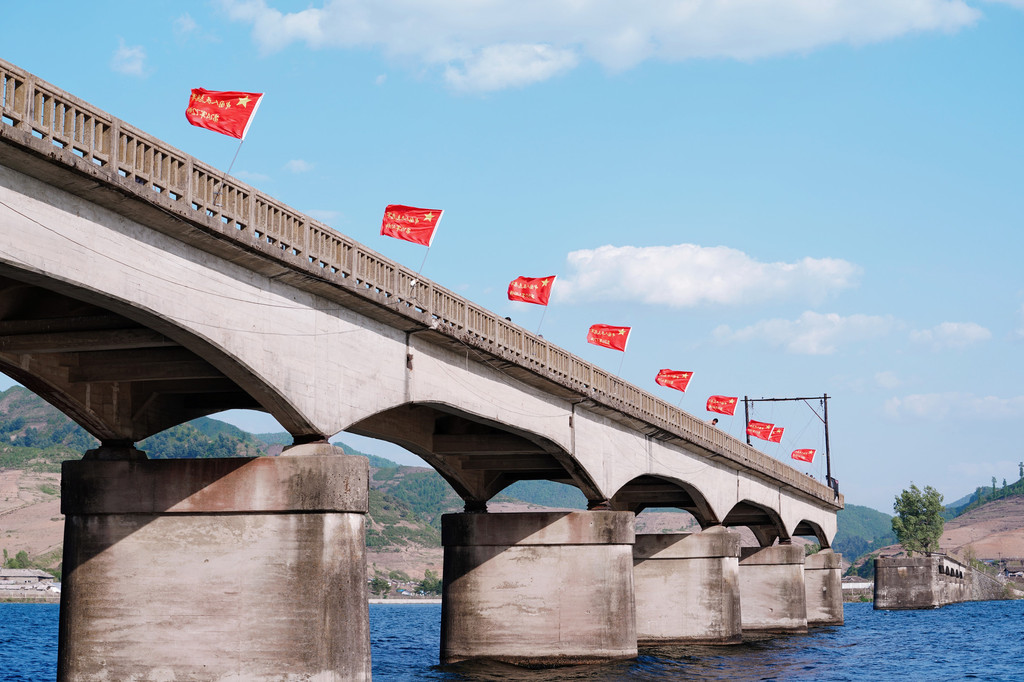 ★第2座断桥:抗美援朝下河口公路断桥遗址:位于宽甸满族自治县长甸镇河口村鸭绿江上。这座大桥建于1942年,是日本侵略者为了掠夺中国资源,指令伪满洲国和朝鲜当局共建的。大桥桥体为钢筋水泥结构,长709.12米,桥面宽为6米,高25米,设22座桥墩23孔,载重为60吨。是日本帝国主义侵华时所建。