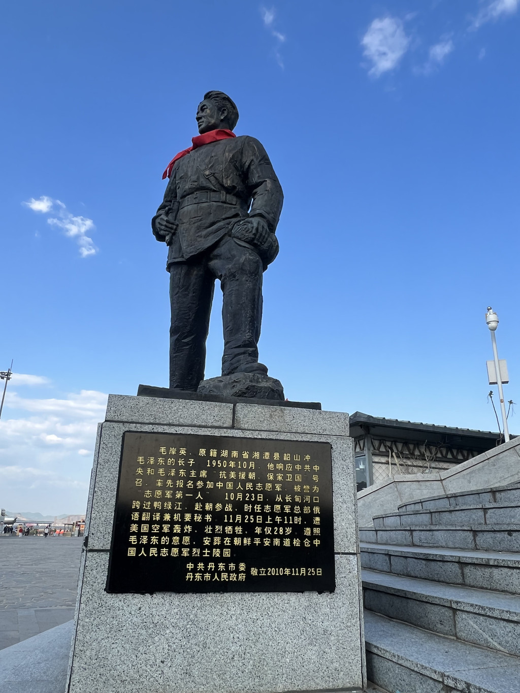 长甸河口是毛岸英烈士在祖国留下最后足迹的地方。为了纪念他,2010年12月1日,丹东市委、市人民政府决定在长甸河口鸭绿江公路桥(断桥)桥头开辟毛岸英广场,广场上毛岸英烈士的铜像高2.8米,毛岸英一身戎装,手握腰间的手枪,坚毅的目光望向远方,时刻准备着,为祖国出征。