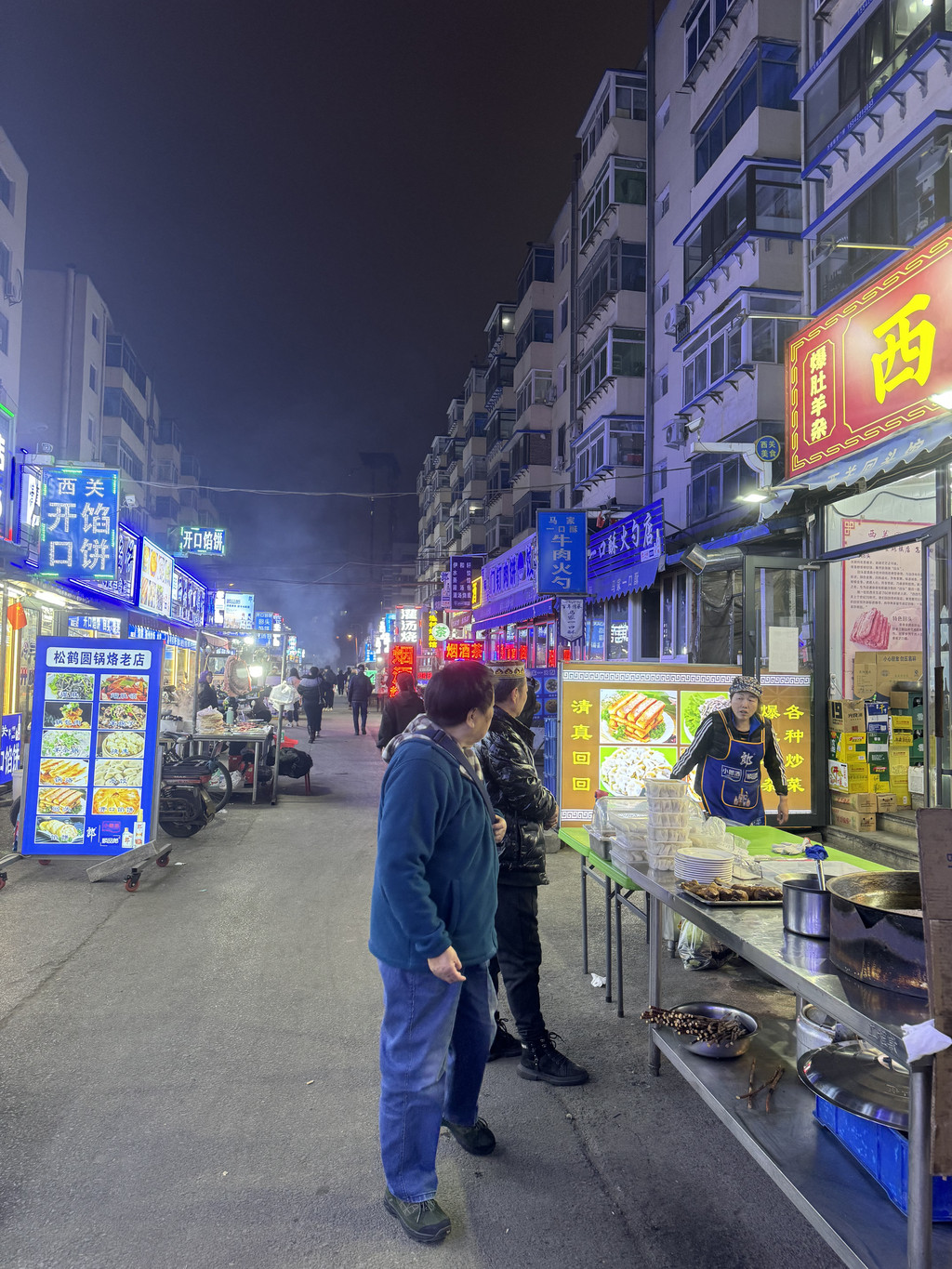晚上在博物馆附近的西关美食街。这里是沈阳市回族最大的一处聚居区。正式建于1625年清太宗时期。始建于1625年。元朝时期就有回族居住,至今已有六七百年历史。