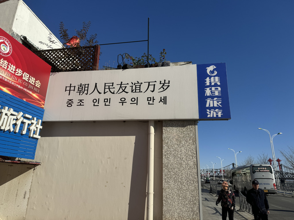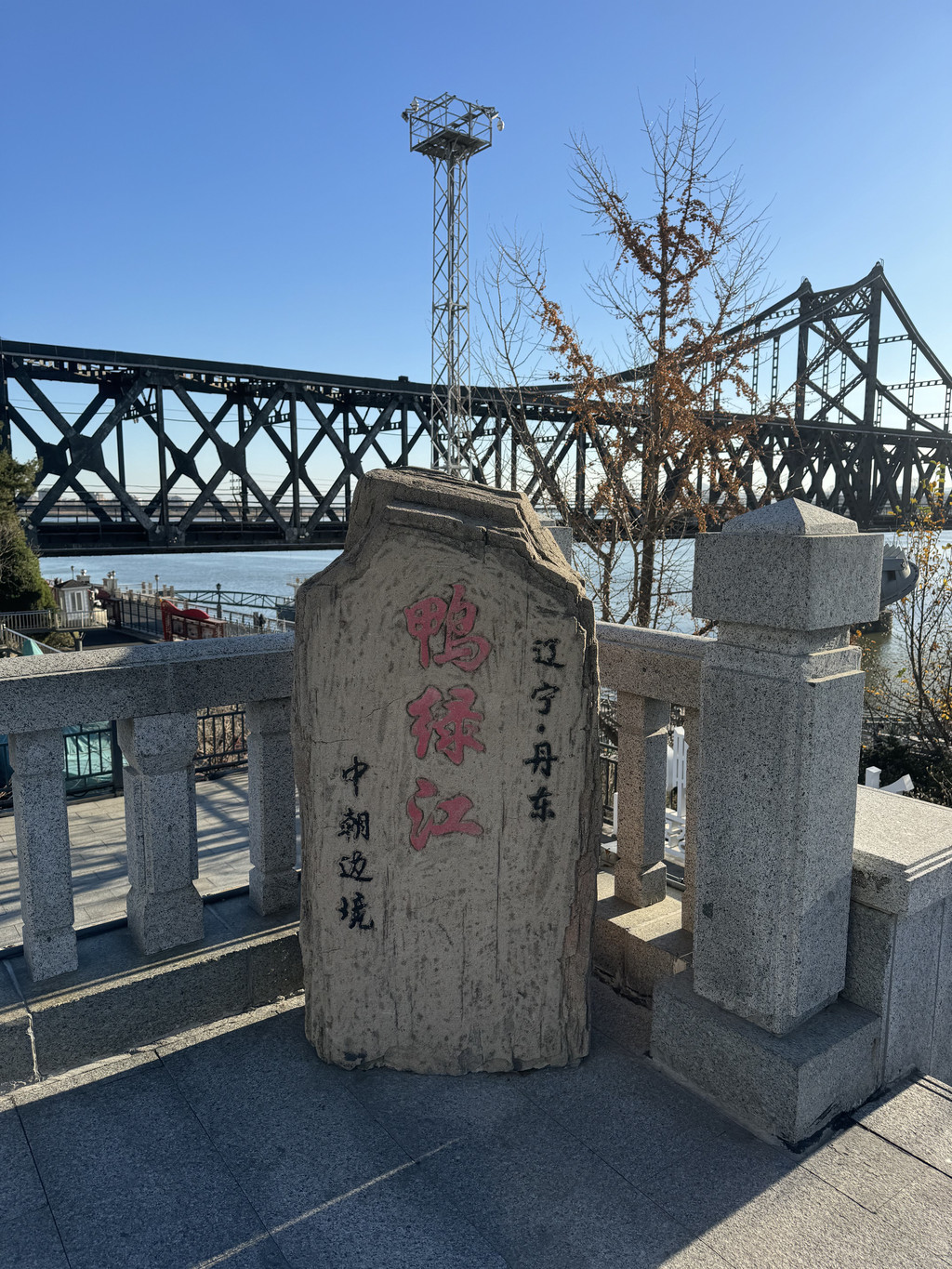 大晴天了,我们赶在一开门就上了鸭绿江断桥,这座因为抗美援朝而闻名的桥梁。