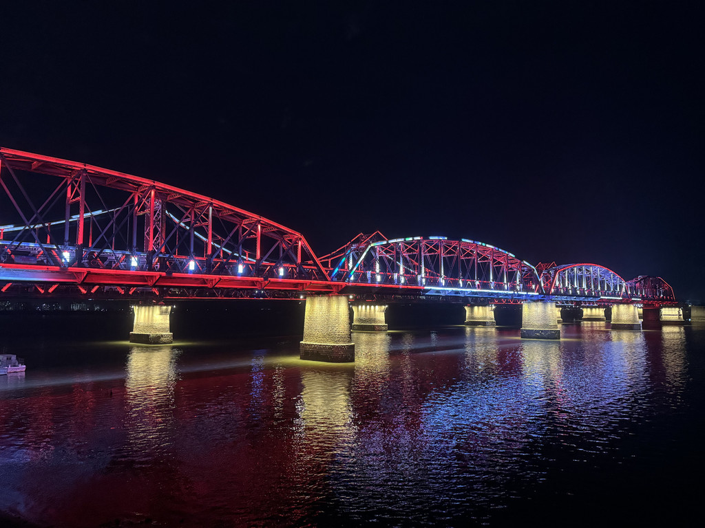 鸭绿江是中朝两界国河,与朝鲜的新义州隔江相望。鸭绿江断桥不仅能一览开阔江景,远眺朝鲜,就连日落和华灯夜景也别有一番景致。