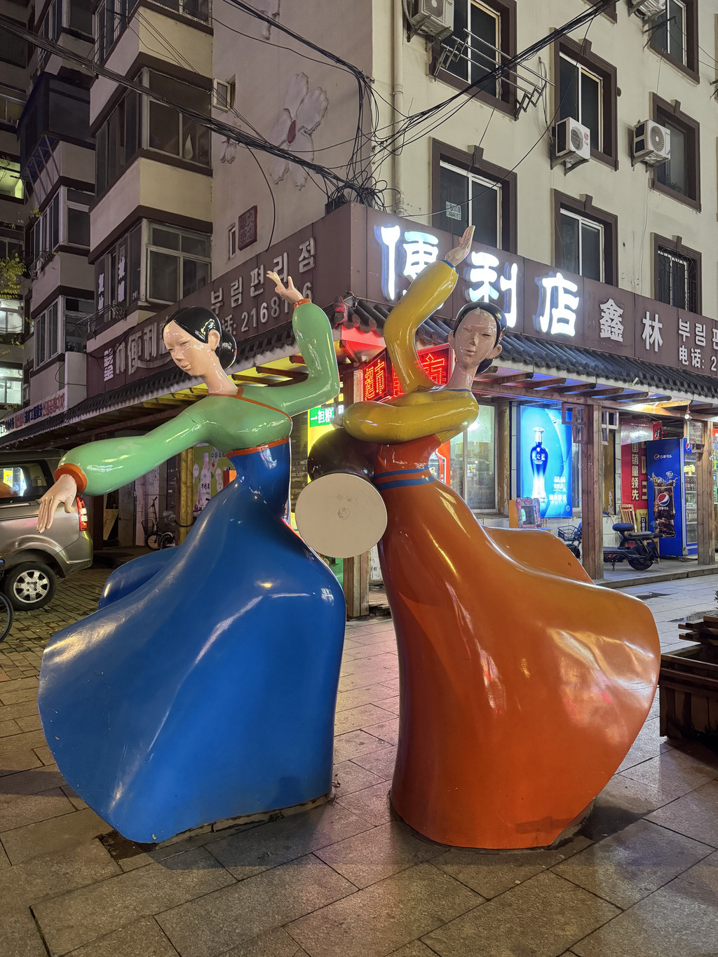 高丽街是朝韩美食大餐休闲娱乐的汇聚地,走在街头,随处可见用韩文展示的广告招牌。这条街上有各式朝鲜美食,盘肉、海鲜及海鲜捞拌(蘸料上百种),数十家韩国烧烤、人参鸡汤也是非常有档次的!街道上的朝韩风情雕塑增添了异域风情。