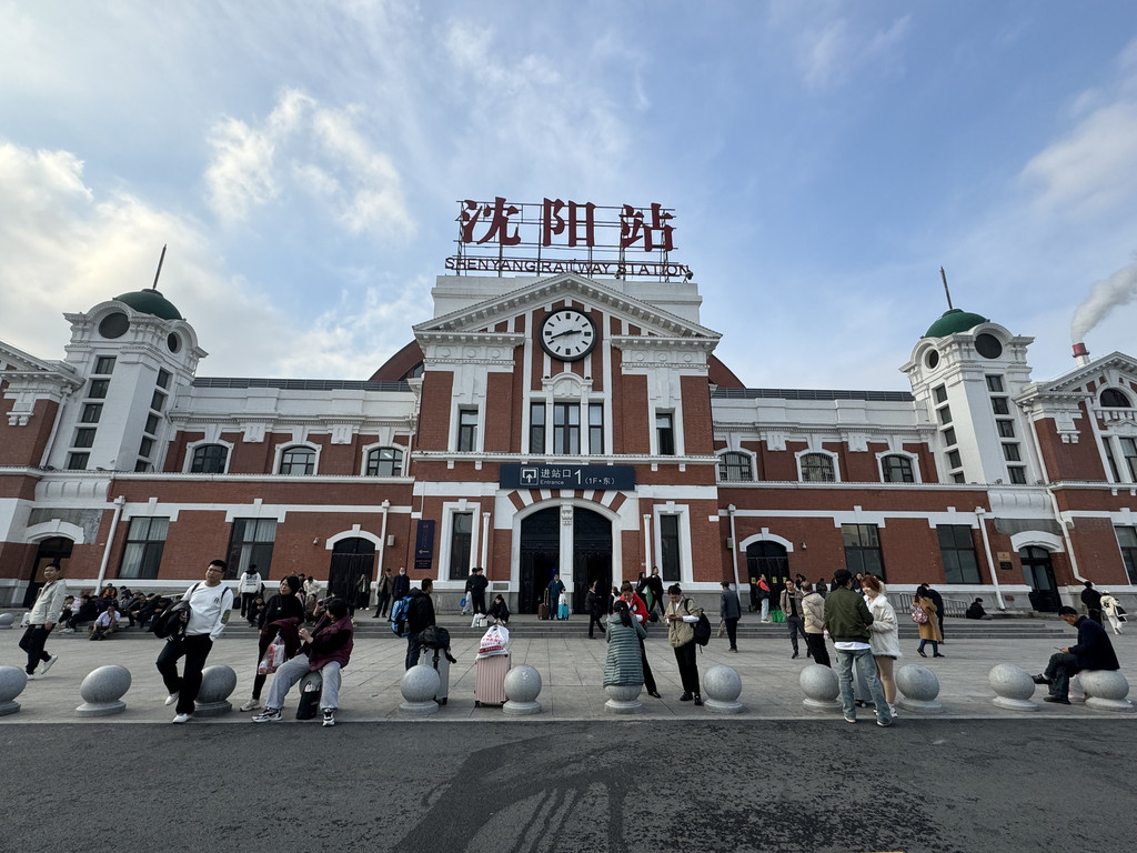 下午回酒店取行李后,我们从沈阳站出发到丹东。沈阳站的建筑挺古老,颜值高。