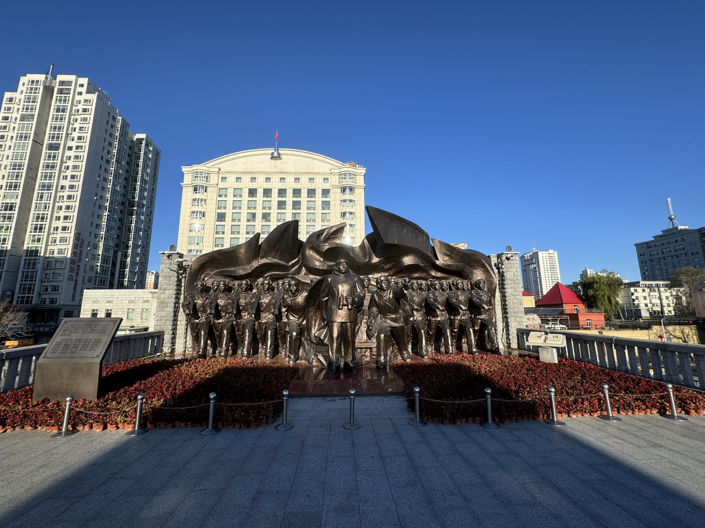 1个半小时后,我们开始了探索第二个目的地-丹东。从丹东站出站就看到巨大的毛主席像矗立在火车站广场,这尊雕塑也是丹东站的标志。