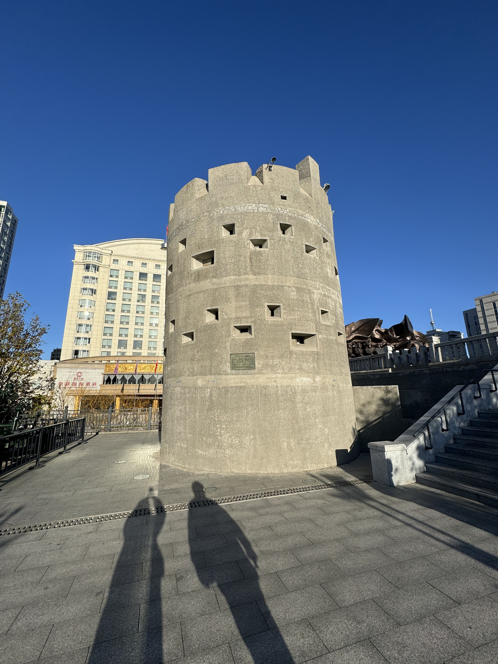 景点入口处为断桥桥头竖立着一座炮楼,是当年日本人守桥的主要工事,炮楼外表是用宽厚石料砌成的墙体,看起来十分坚固。