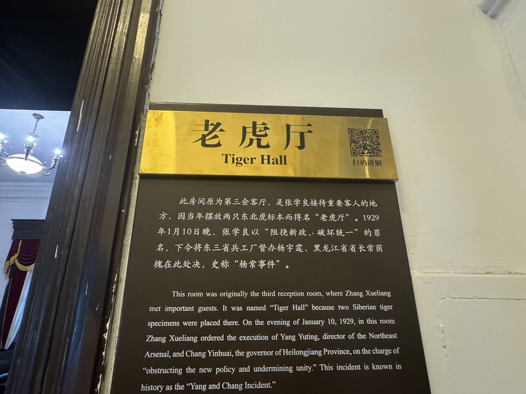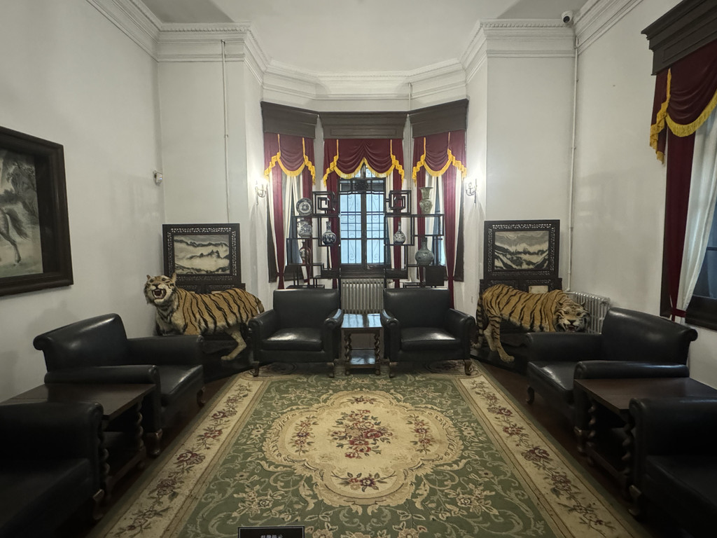 大青楼是张氏帅府的标志性建筑,仿罗马式,因采用青砖建造,故称大青楼。大青楼高37米,顶层有观光平台,是民国时期奉天城除凤凰楼外的最高点。帅府内老虎厅里两只老虎标本正气宇轩昂的站在座椅两旁,看上去十分的威严。