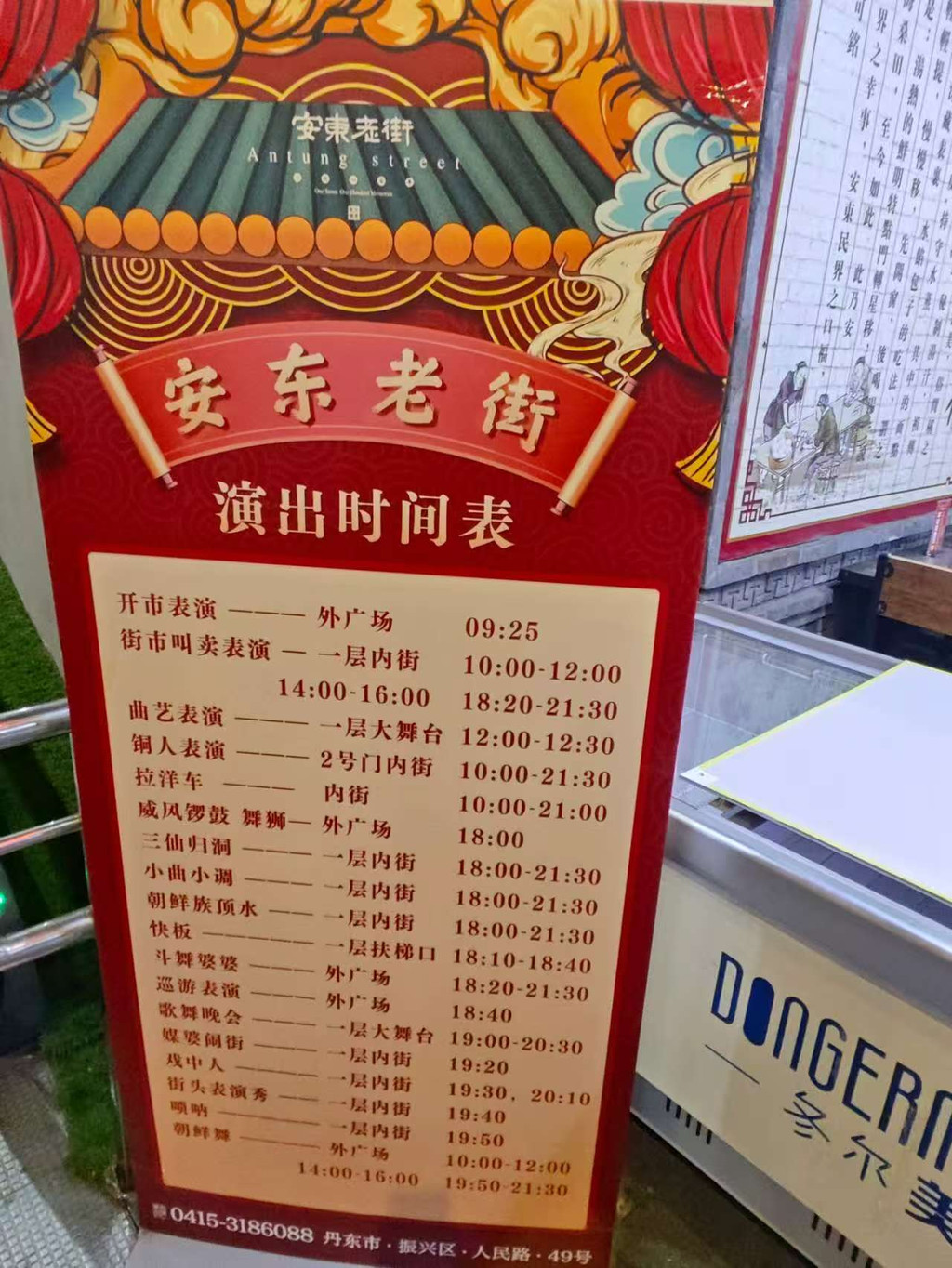 踏入安东老街中的剧场,仿若步入了时光交织的奇妙之境。剧场外观古色古香,红柱挺立,与老街整体的传统风貌相得益彰。屋檐下悬挂着鲜艳的红灯笼,微风拂过,轻轻摇曳,似在诉说着过往的故事。步入其中,内部空间宽敞而布局精巧。木质的长桌长凳整齐摆放,散发着淡淡的木香,给人一种质朴而温暖的感觉。观众们围坐四周,脸上洋溢着期待的神情。舞台虽不大,却布置得精致典雅。背景幕布上,或绘有安东古城的繁华旧景,或展现着当地独特的民俗风情。台上的表演者们身着传统服饰,身姿曼妙,唱腔婉转。那悠扬的戏曲声、欢快的曲调声,伴随着偶尔传来的乐器演奏声,在剧场内回荡。剧场的一侧还设有一块大屏幕,循环播放着与安东历史文化相关的影像,让观众在欣赏精彩表演的同时,也能更深入地了解这片土地的过去。在这里,传统的艺术表演与老街的独特氛围完美融合,营造出一种别具一格的文化体验,吸引着众多游客驻足观赏,沉醉其中,仿佛穿越回了安东曾经的繁华岁月。