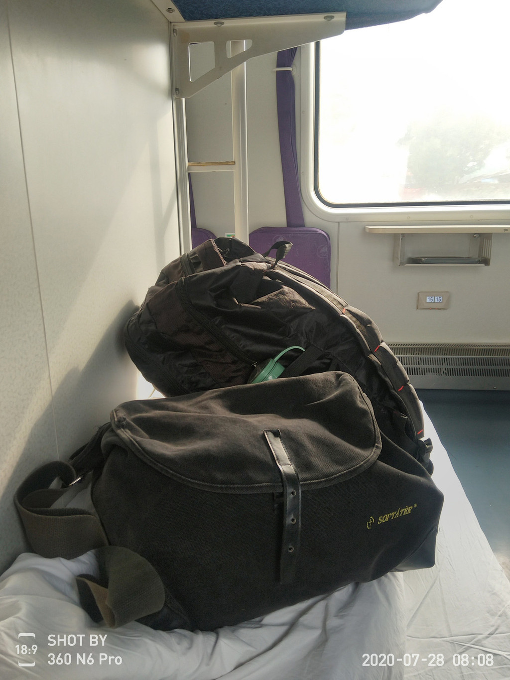 K1616次卧铺车厢(这次出行的行李:一个双肩包装衣物,一个挎包装了两部相机)
