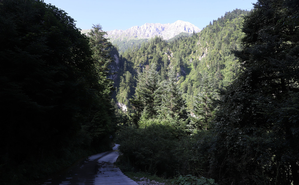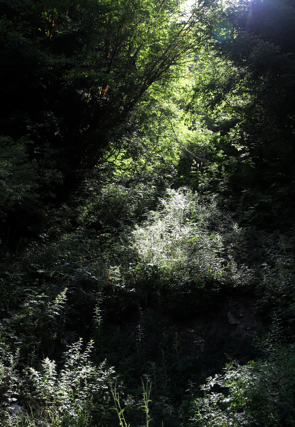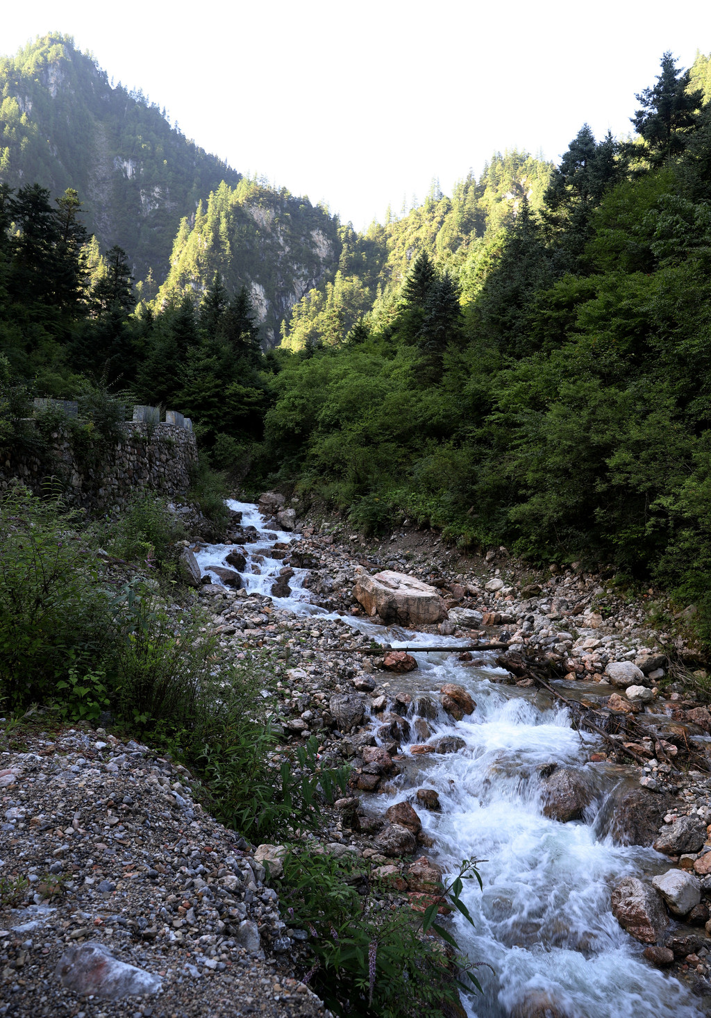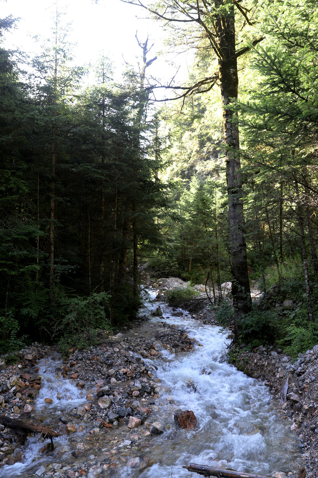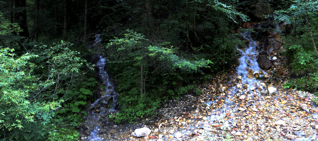 进鹅嫚沟景区以后,沿着无数个慢上坡的道路,一边行走,一边寻找适合拍摄的场景。这里植被非常茂盛,山间溪水较官珠沟小,而且小溪的数量也不太多。但上山道路的坡度相对较陡,上行比较费力。