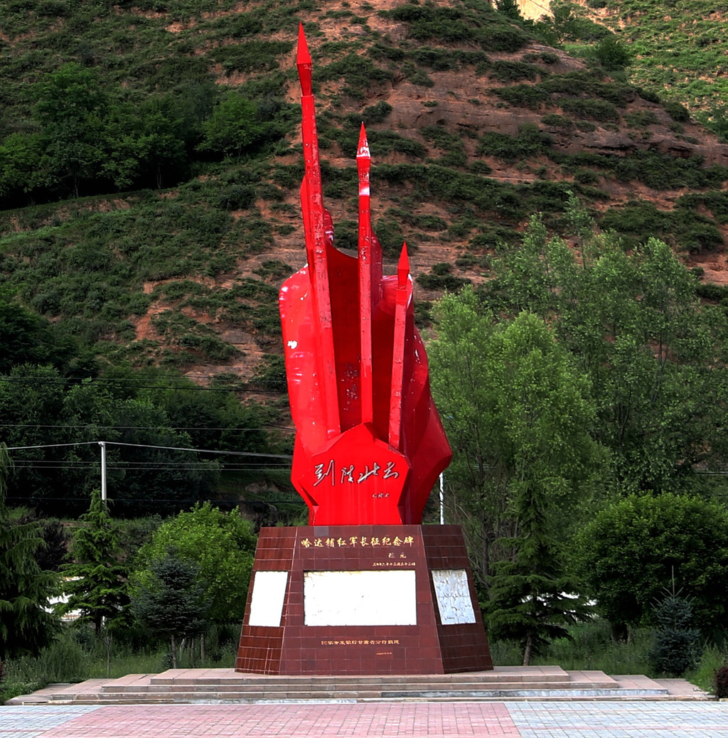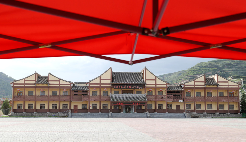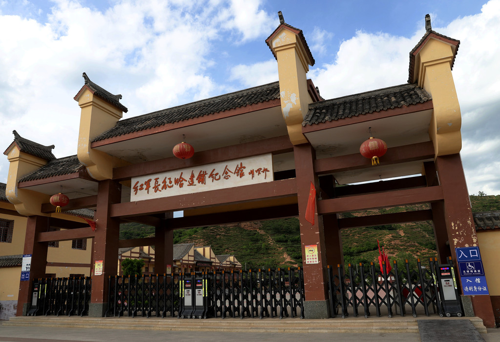 我是27号下午快4点时到达哈达铺的,下车后立即前往红军纪念馆。得知当天是星期一,纪念馆闭馆,但也必须要去。背着行李,步行大半个小时到达纪念馆,纪念馆大门上由胡耀邦同志题写的“红军长征哈达铺纪念馆“几个金色大字,在纪念馆前广场上拍了一些照片,缅怀革命英烈,然后经“红军门“寻找当年红军的足迹。