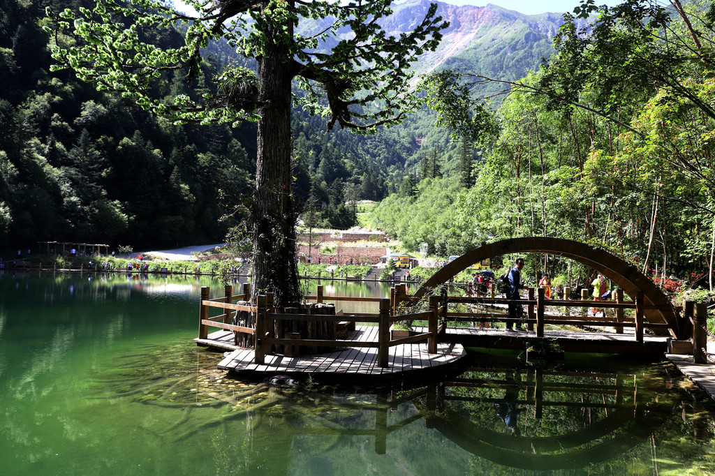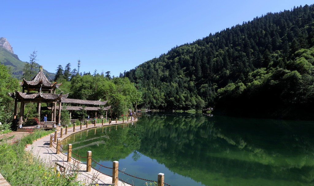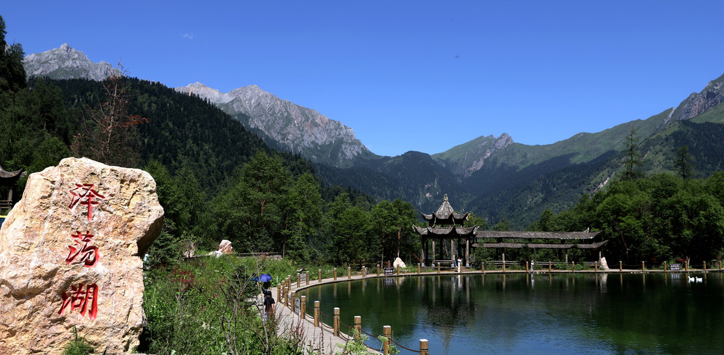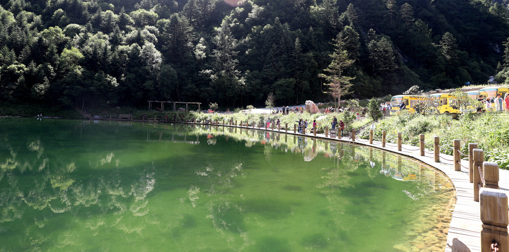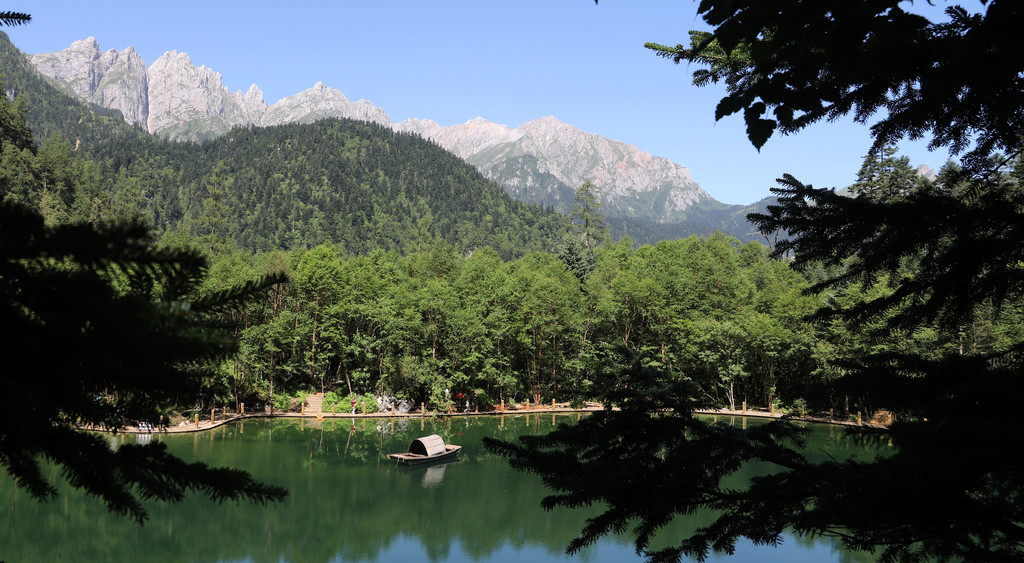 经过一个小时50分钟的艰苦跋涉,终于在上午10点顺利登上山顶的高山湖泊-泽荡湖(俗称“天池”)。湖水碧绿纯净,湖面如镜,宛如江南水乡。此湖泊为鹅嫚沟的看家之宝!
