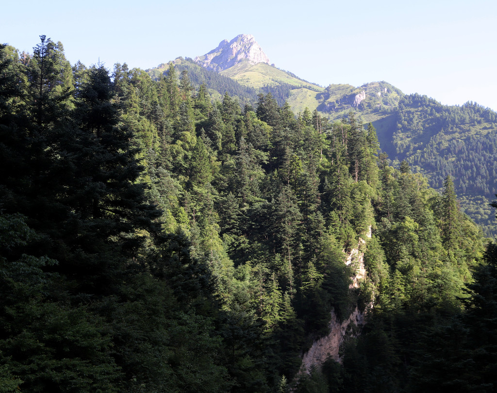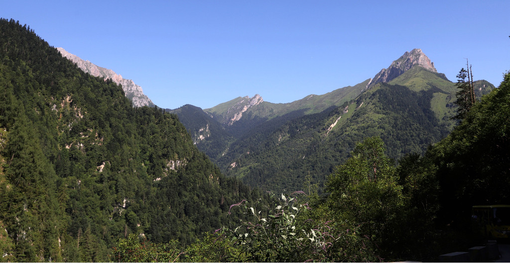 27号早上7点乘接送工作人员的公交车第一个到达鹅嫚沟景区游客中心(提前了解了有关信息,比正班公交车提前了一个小时,为后续行程争取了一个小时的机动时间),在景区游客中心周边拍了会外景,这里的风景还是非常不错的。7:50乘景交车去景区大门,8:10左右到达鹅嫚沟景区大门,然后徒步上山,主要为了拍摄方便,全程4.7公里。