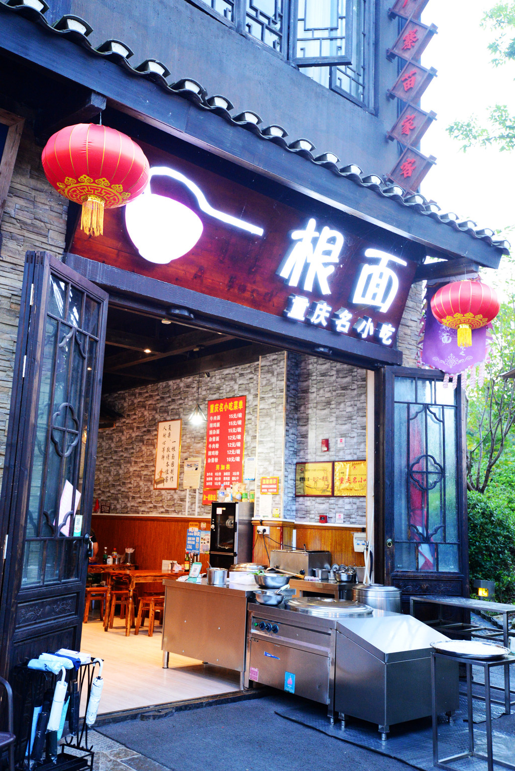 重庆的特色一桹面店也开到这里了,一桹面就是一碗,一碗只有一桹面,这桹面得多长啊。