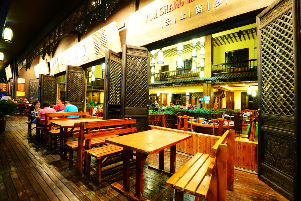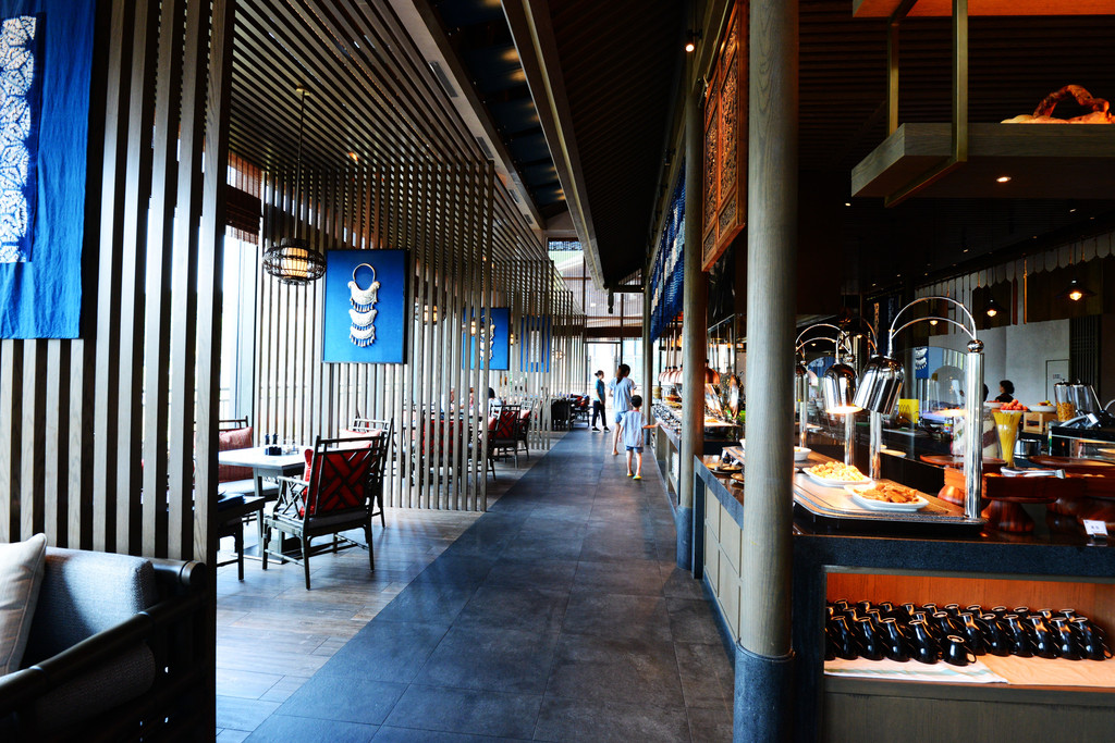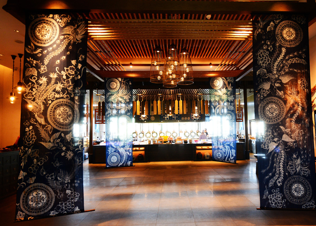 餐厅里充斥着蜡染、刺绣、造纸、鸟笼等当地非物质文化遗产元素,就餐之中能感受独特的民族文化。