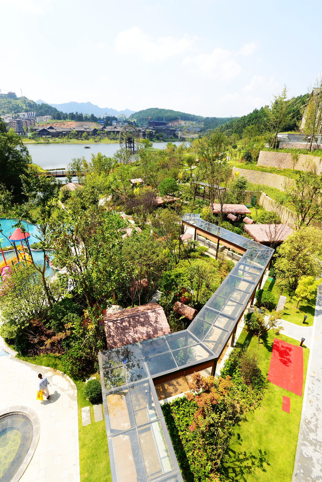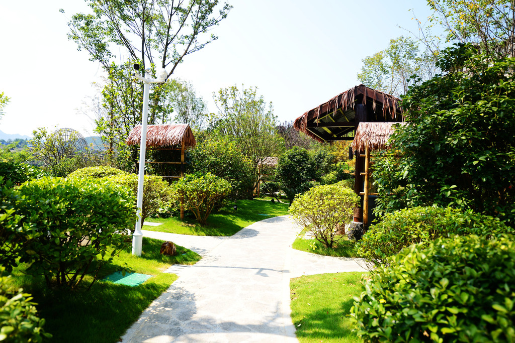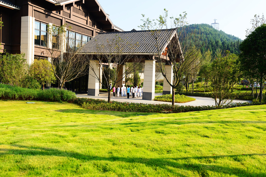 酒店没有围墙,有的是大面积的草坪,还有我叫不出名字的花木,风格以苗族建筑元素为主,建筑与山水相融,呈现出一派人类文明与粗旷大自然相遇的舒服感。外景是园林化的生态布局,为典型的南方桃花源式景观,内饰设计感十足,蕴含东方人居智慧,秀外慧中,藏风纳气,细节考究,处处惊艳。真香!