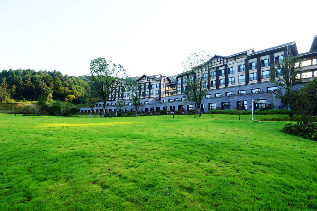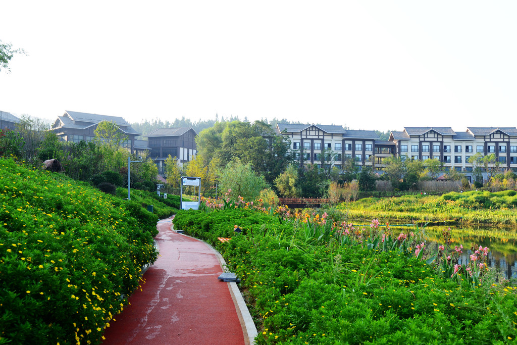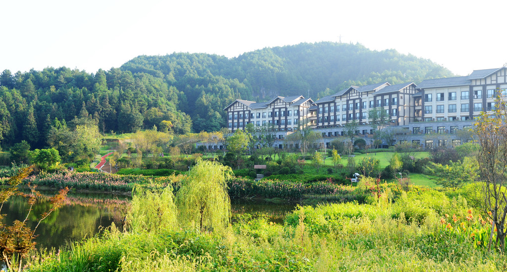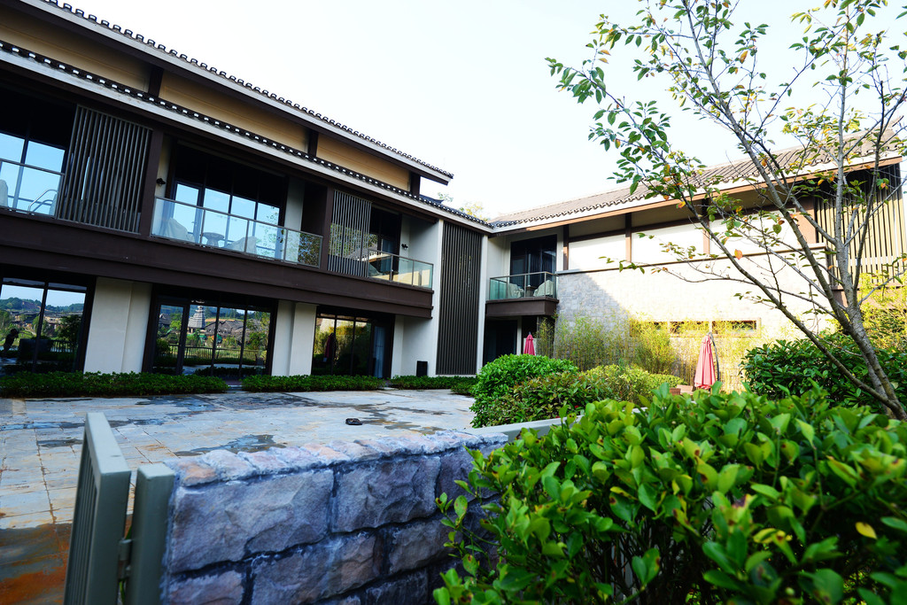 设计师巧妙地将酒店每个功能建筑安排进周遭800亩山水画卷中,四周为山、中间有水,一年四季花开叶落,有山有水有花,几乎没人,非常值得走走看看。