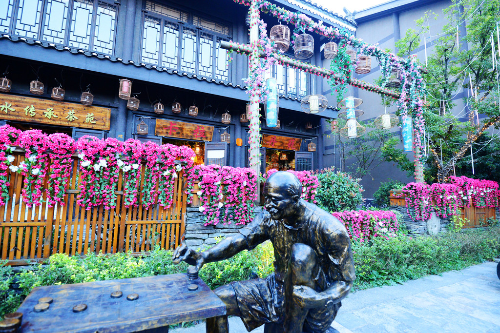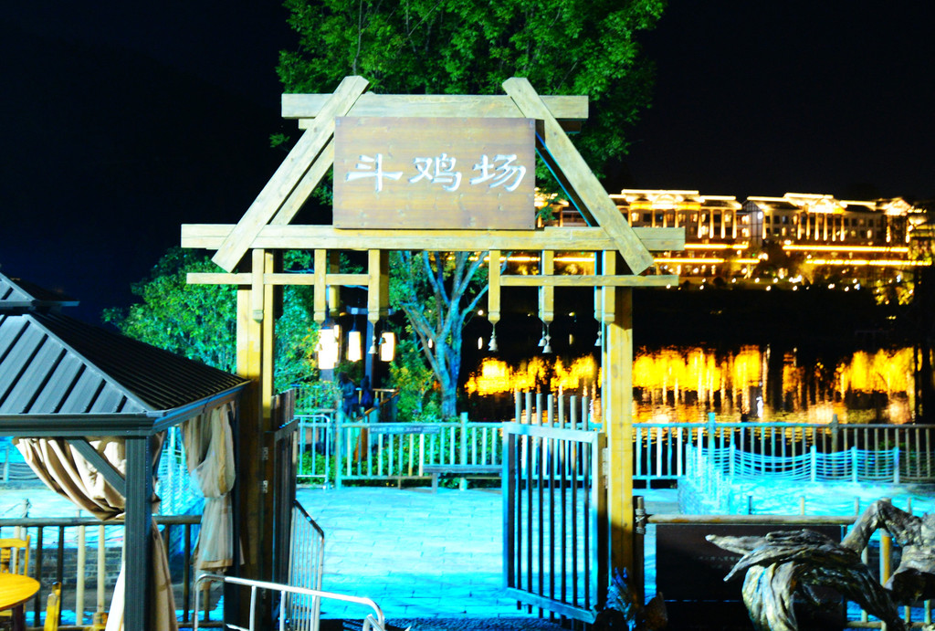 出了蜡染小院,又来到三大斗艺场之一的斗鸡场,要看斗鸡的得白天来,晚上鸡要睡觉。