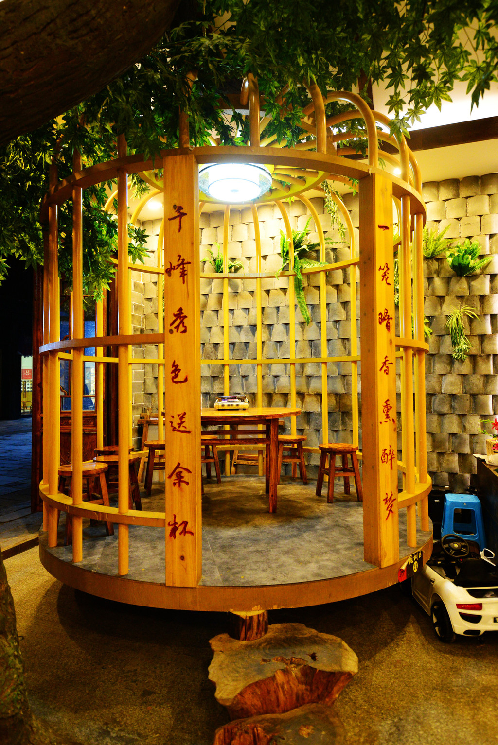 餐席也做成了鸟笼状,果然是鸟乡。