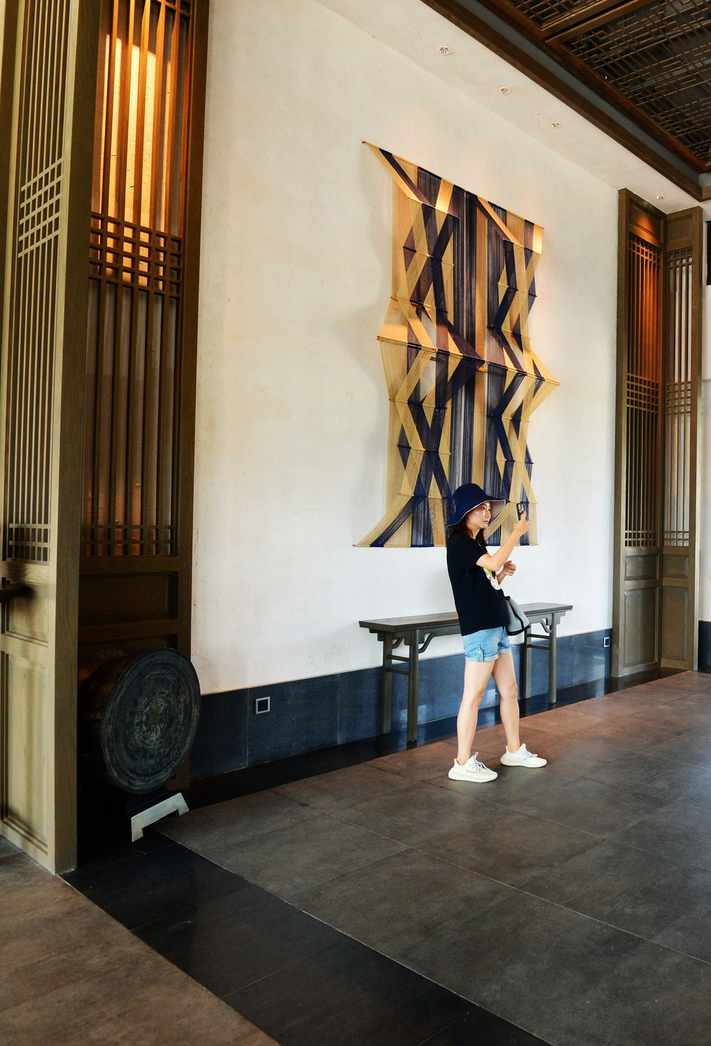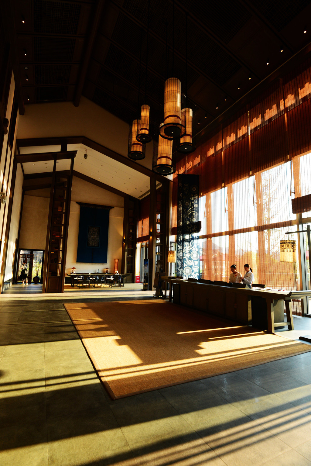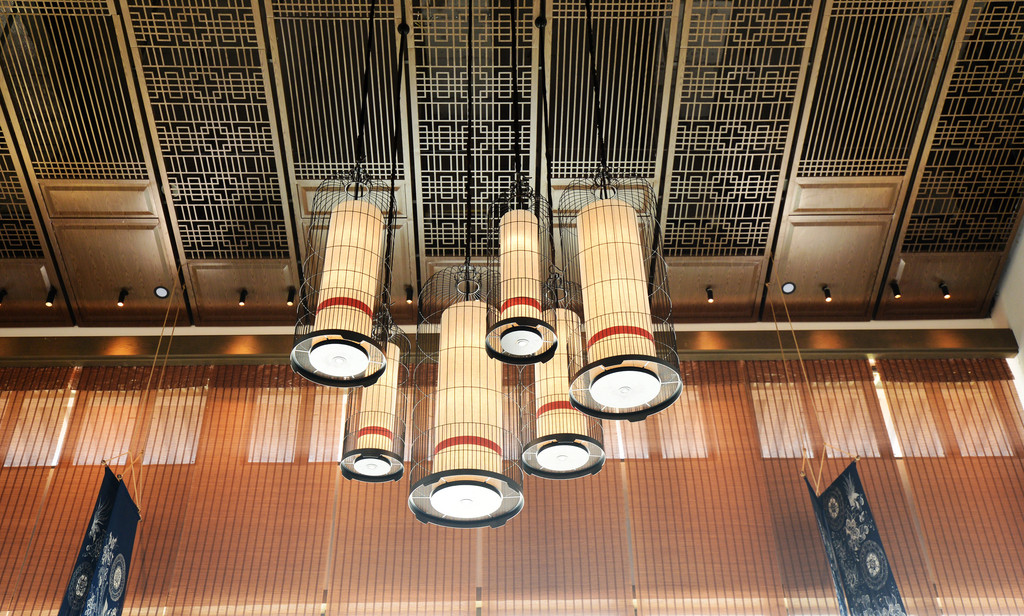 大堂的吊灯很特别,由鸟笼加古法造纸而成,丹寨县不仅是“中国蜡染艺术之乡”,还是“中国鸟笼之乡”、“中国古法造纸之乡”、“中国锦鸡文化之乡”、“中国芒筒芦笙之乡”。