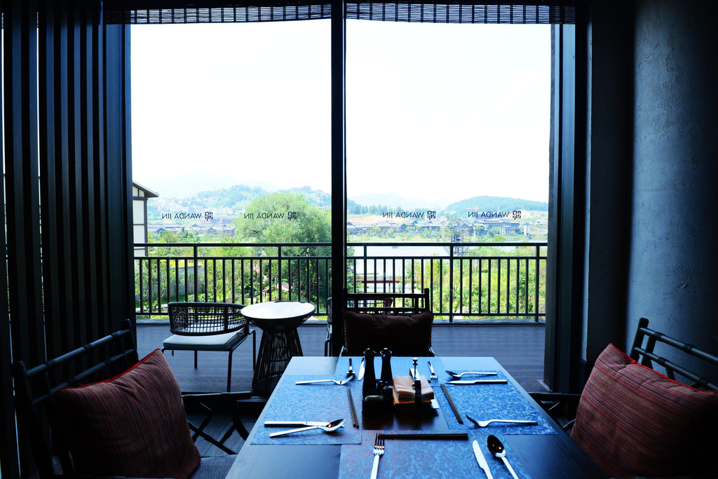 隔着湖看酒店,颇有几分电影《影》中的孤冷美感,大山深处有这么好个酒店简直是惊喜,这就是万达该有的样子。