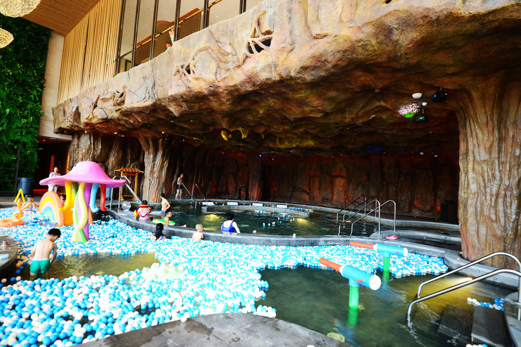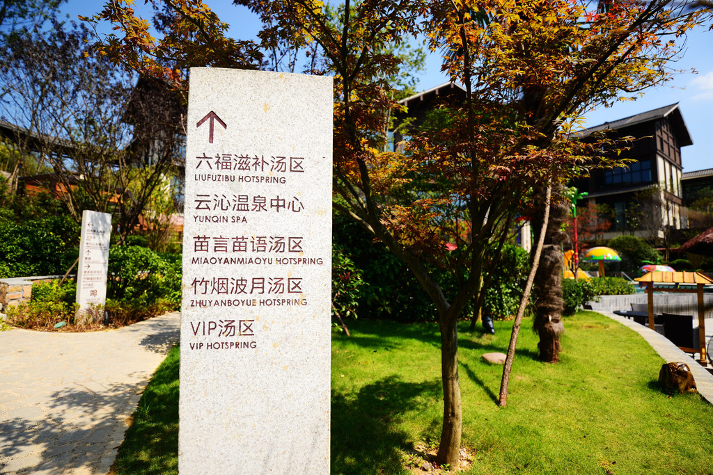 此温泉中心分布在天然山沟中,有六福滋补汤区、四大美人汤区、苗言苗语汤区、竹烟波月汤区、寄情山水区、VLP汤区等六大主题汤区,足足有38个泡池,神仙享受莫过如此。