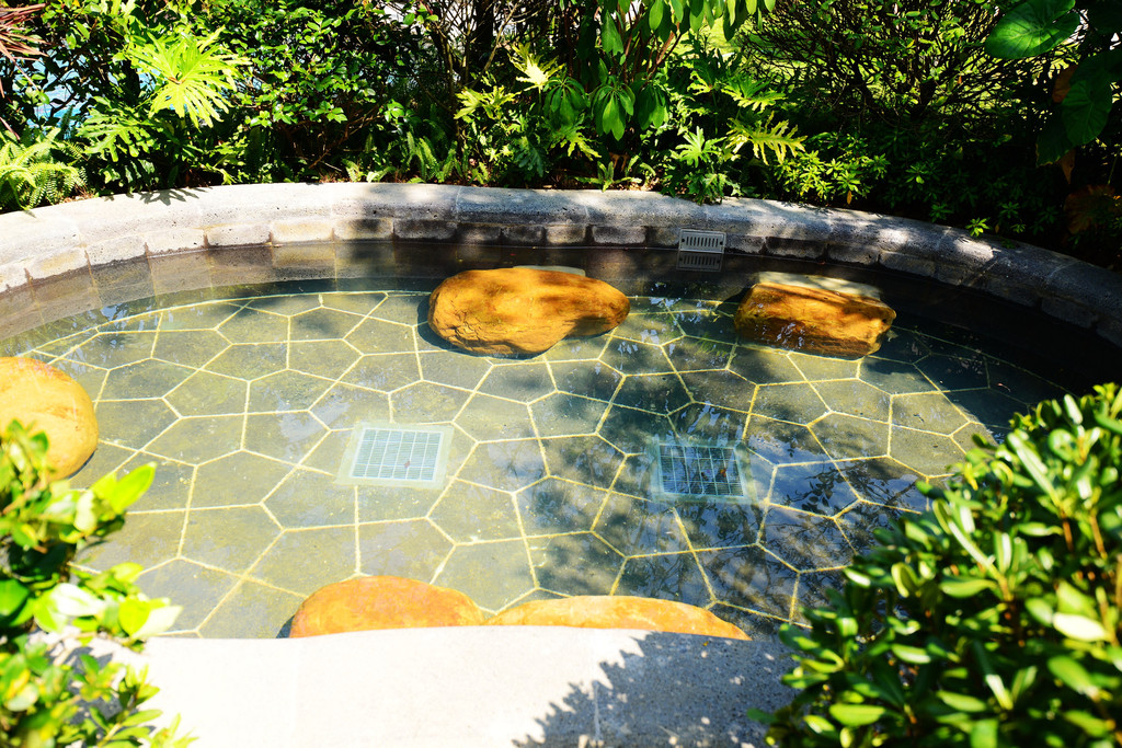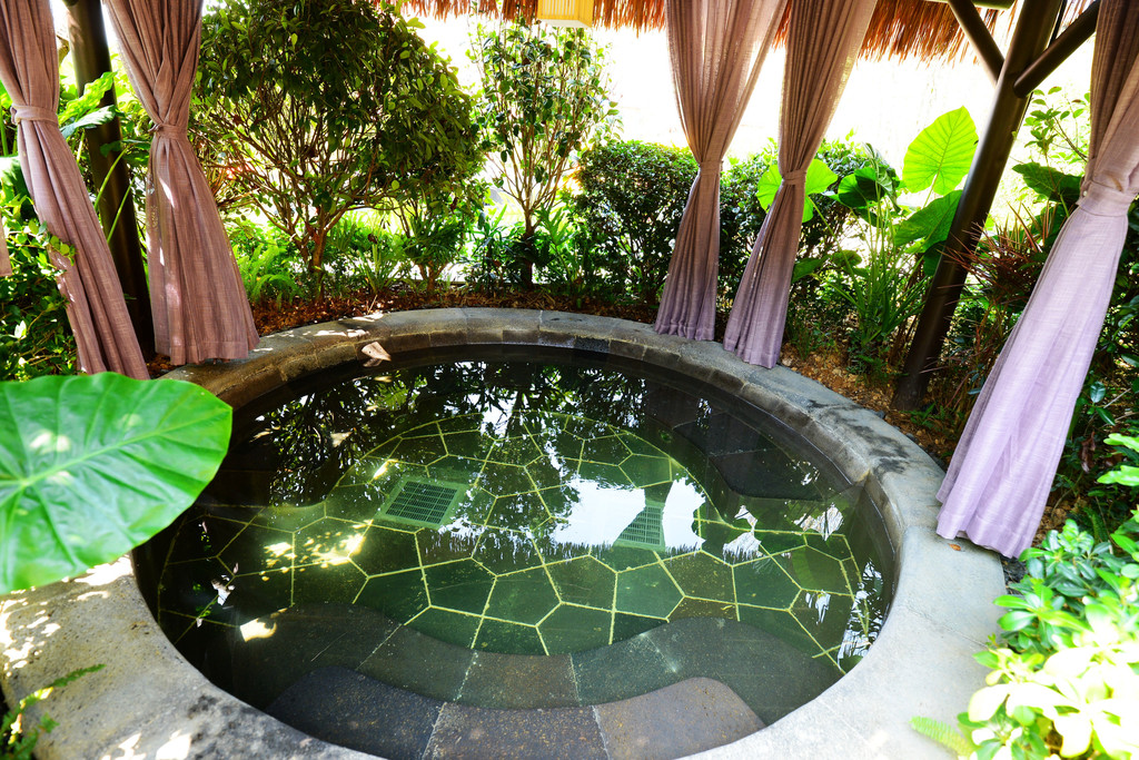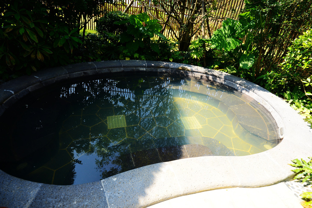 和日本众多温泉酒店一样,室外每个泡池被竹木和凉台亭阁围绕,周围绿意盎然,环境清幽。