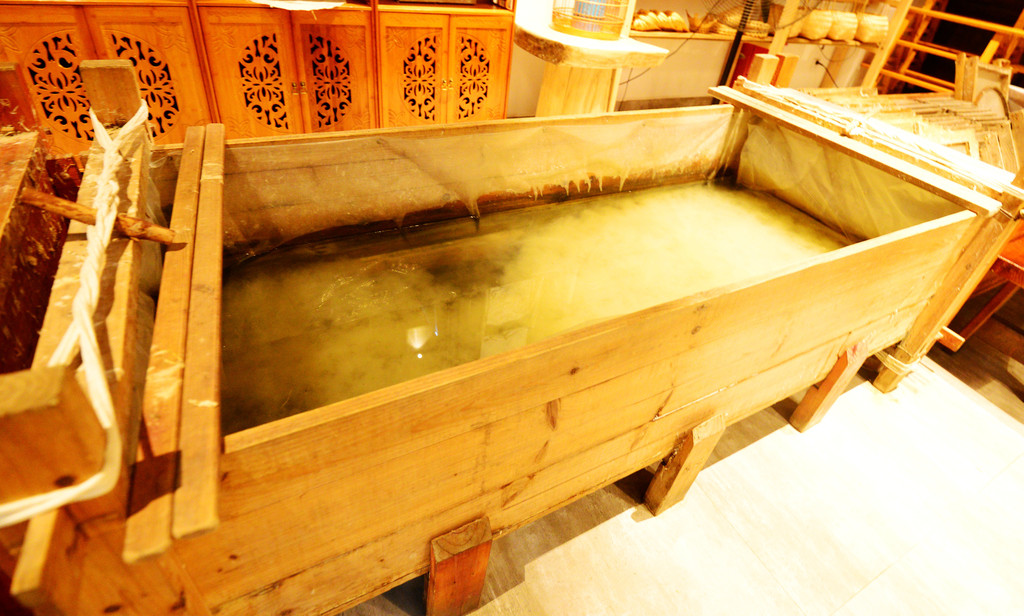 在造纸小院,游客们可以看到制造古纸的各种工具,也能欣赏到一张张成品古纸,还可以动手造纸,十分有趣。