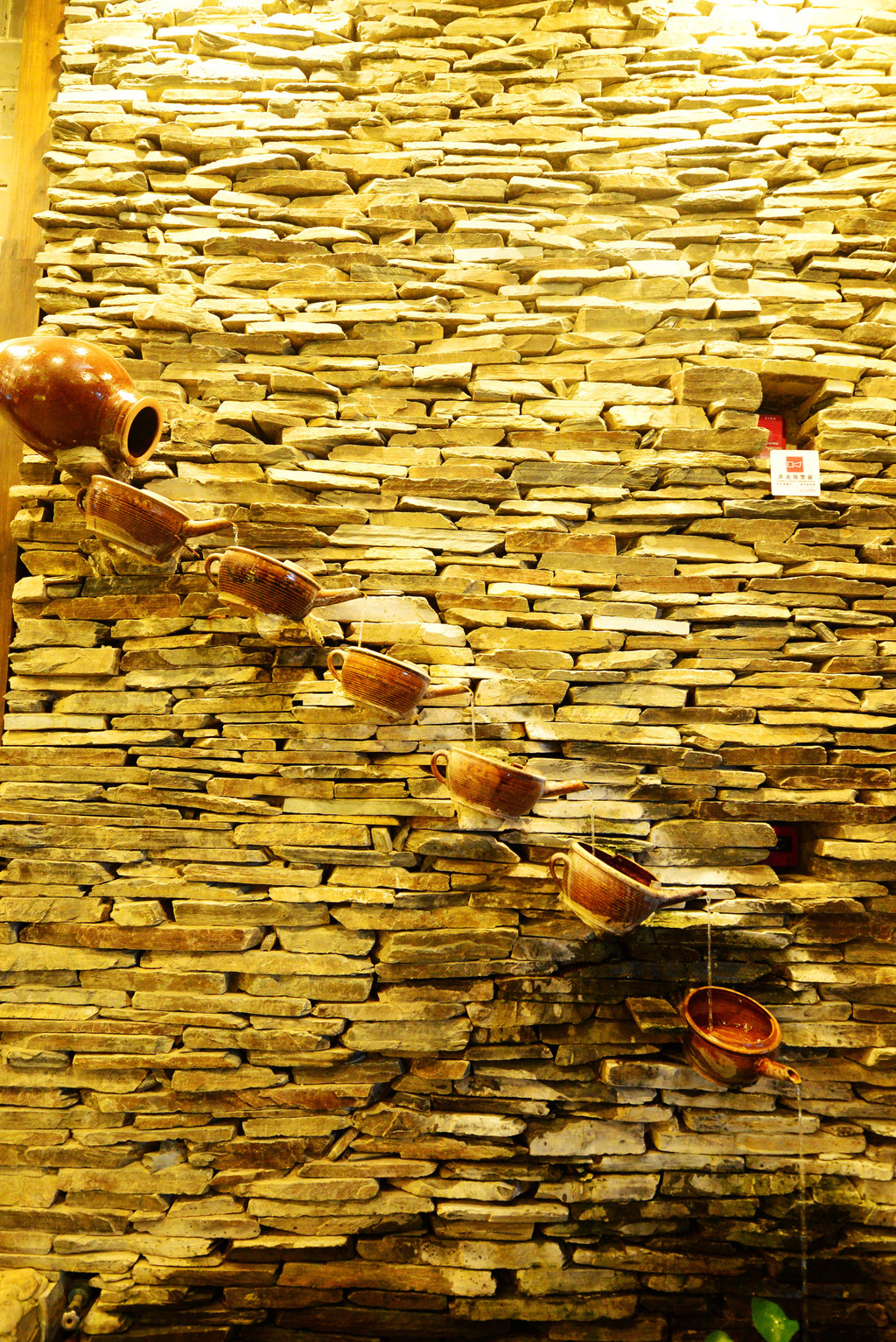 室内泡池做了岩石墙,有种天然山洞之感。