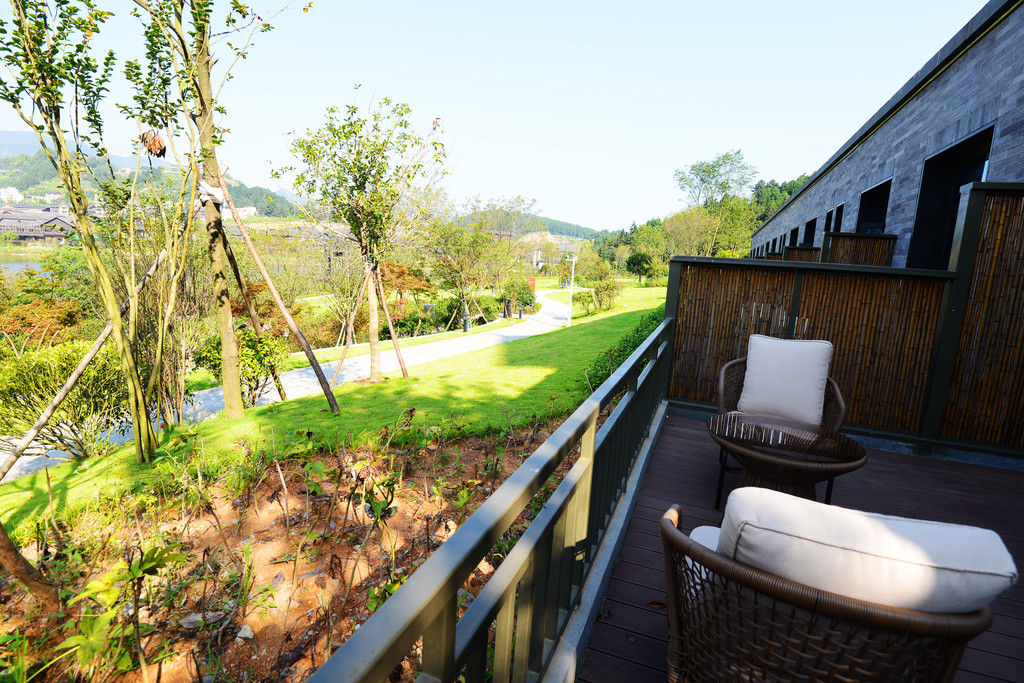 不过我大部分时间是坐在阳台上,这里有一对藤椅,正对着山湖,喝点小酒,看看风景,吹吹风,心中的阴霾一扫而光,那感觉简直不要太好。夜晚,还可遥望星空,听虫鸣协奏,爱了,爱了。