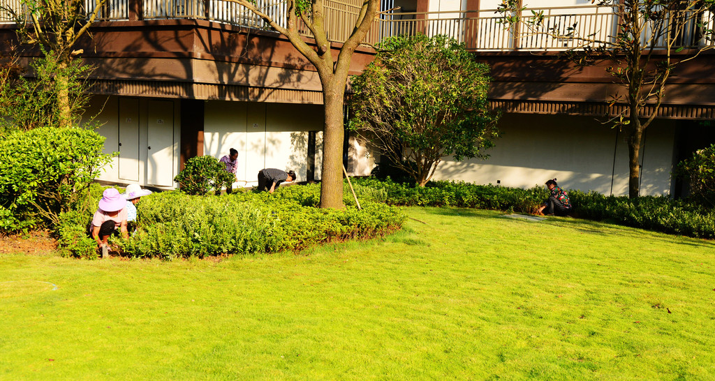 几十个民工正在小院添绿植,据说是迎接要来考察的王见0,为不影响他们工作,我就拍一角好了。