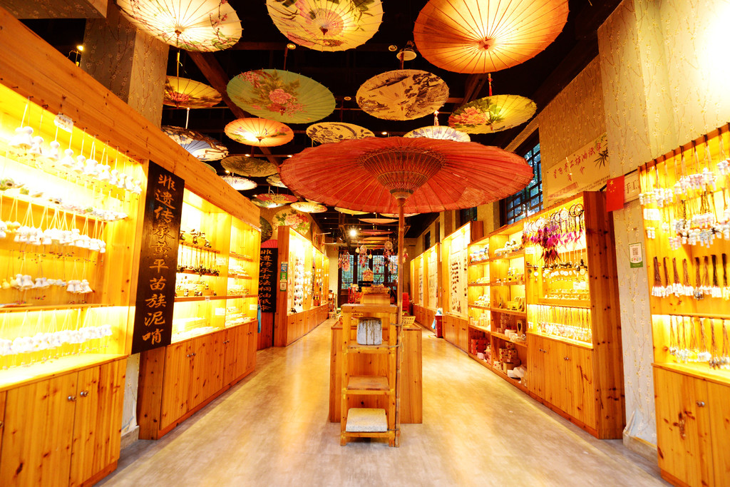 街道上商铺、客栈林立,苗族、侗族特色小店一家挨一家,游客们可买到苗族侗族服装,也可以在银匠店里买到苗族精美的银首饰,还能在手工艺品店淘到一些有趣的小玩意儿。