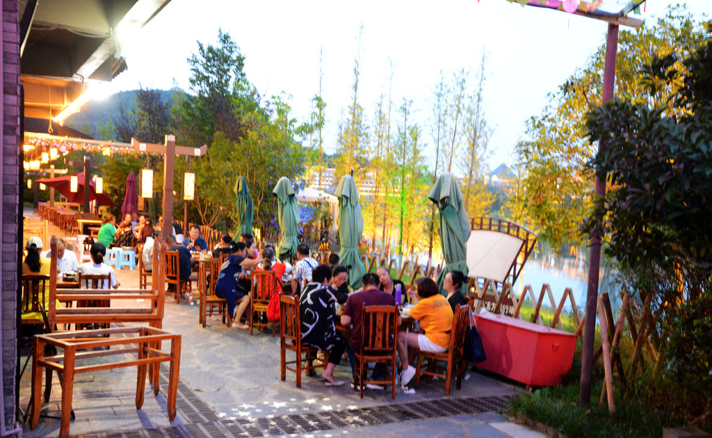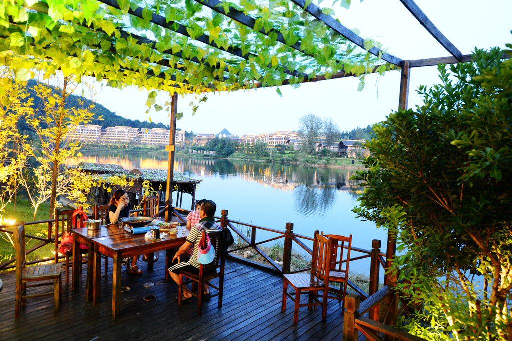 湖边的餐馆生意家家很火,没有什么比在湖边吃饭更令人惬意的了。