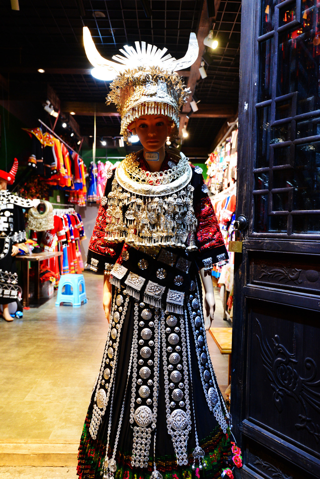 偌大的银饰挂在座位上方,若能穿上苗服,美美拍上几张照片,也是对这趟旅途的一种美好记录吧。