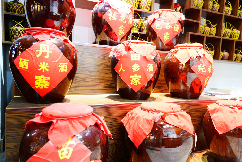 闻着熟悉的味道,作为一个酒鬼,自然要拜访酒坊,店里售卖苗家硒米酒、包谷酒、人参酒等苗家酒,只是都用坛装着,不便带回远方的家。