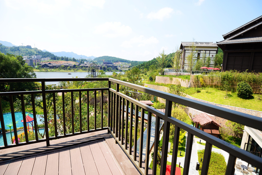 丹红小院更僻静些,占地小两亩地了,小院内有6间套房及6间大床房,幽静别致的院子处处传递着苗族特色,每间套房的阳台配有单独的温泉泡池,怡然舒适,住在这里,就仿佛住进了一幅山水画里,对我有强大的吸引力。