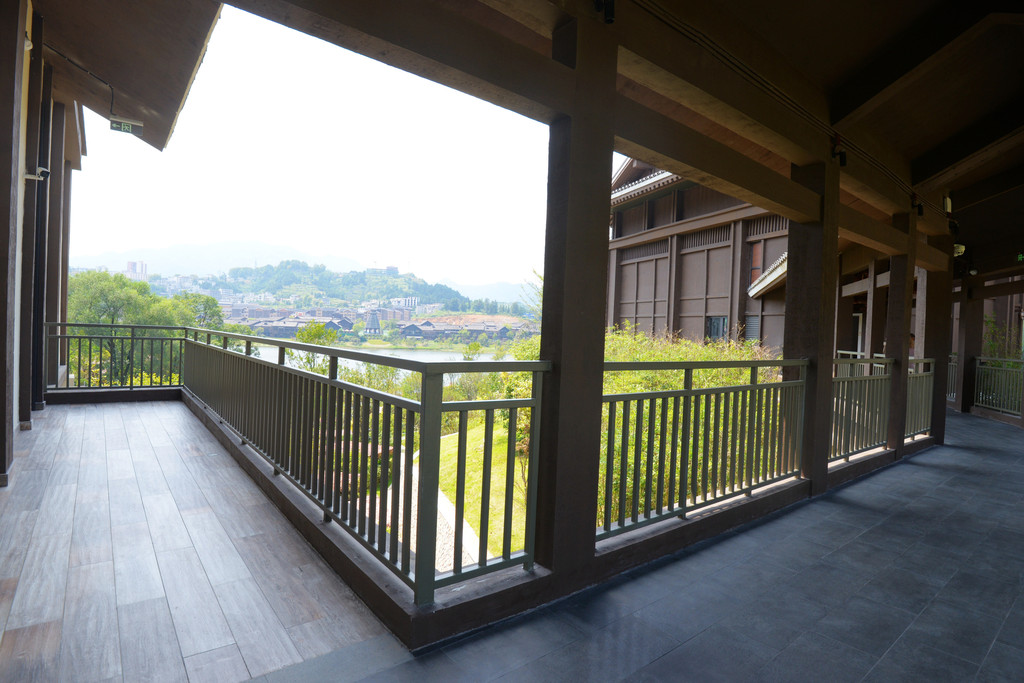 别人家的酒店只是一栋楼,而万达锦华却是一组建筑群,有大堂、客房北区、客房南区、丹红小院、丹绿小院、丹调图书馆等6栋,还有云沁温泉中心,每栋之间有长廊相连,回廊将秋色揽入眼帘,雅致中带着随性,优秀!