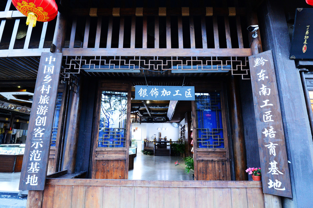 在小镇里,有不少手工作坊和体验小院,丹寨县的7个国家级非物质文化遗产项目以及16个省级非物质文化遗产均被植入到小镇,银匠加工便是其中之一。