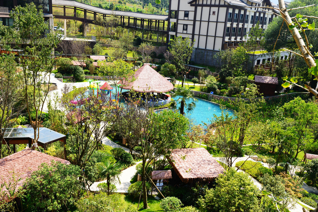 酒店不但依山傍水,沐浴深氧,更自带温泉、无边际水池,完全不用担心不够玩,只怕你精力不够多。