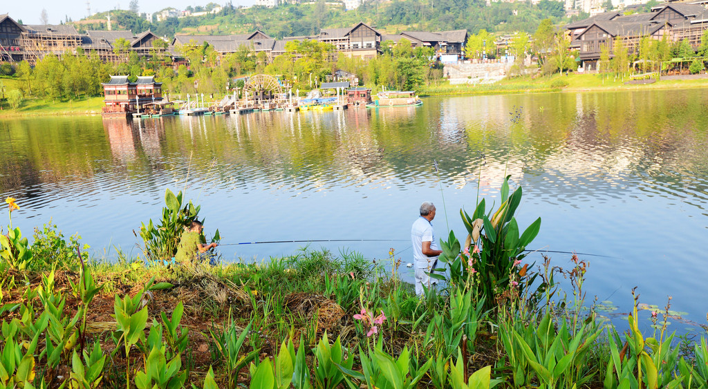 湖边静静地有两位垂钓的闲人,好悠闲的人生啊,我也想钓鱼了。