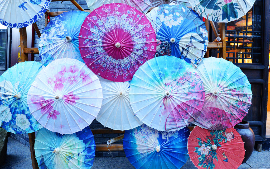 看着这一把把油纸伞,莫名就联想到穿着旗袍的女子撑着它是何等的曼妙。