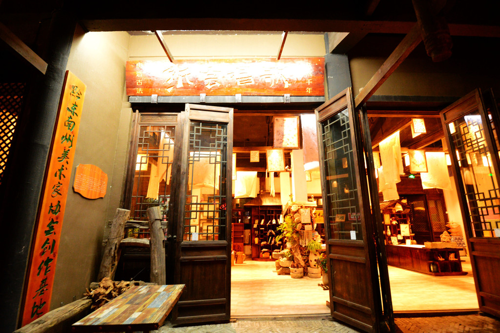 从湖边上岸,回到小镇街上,天完全黑了,富龙我走进了古法造纸作坊。