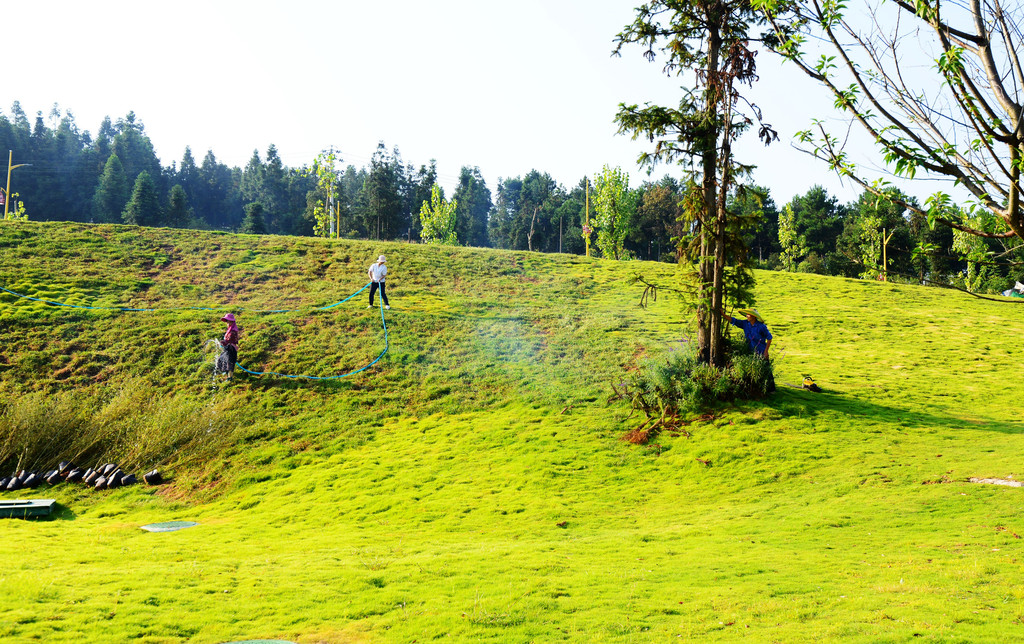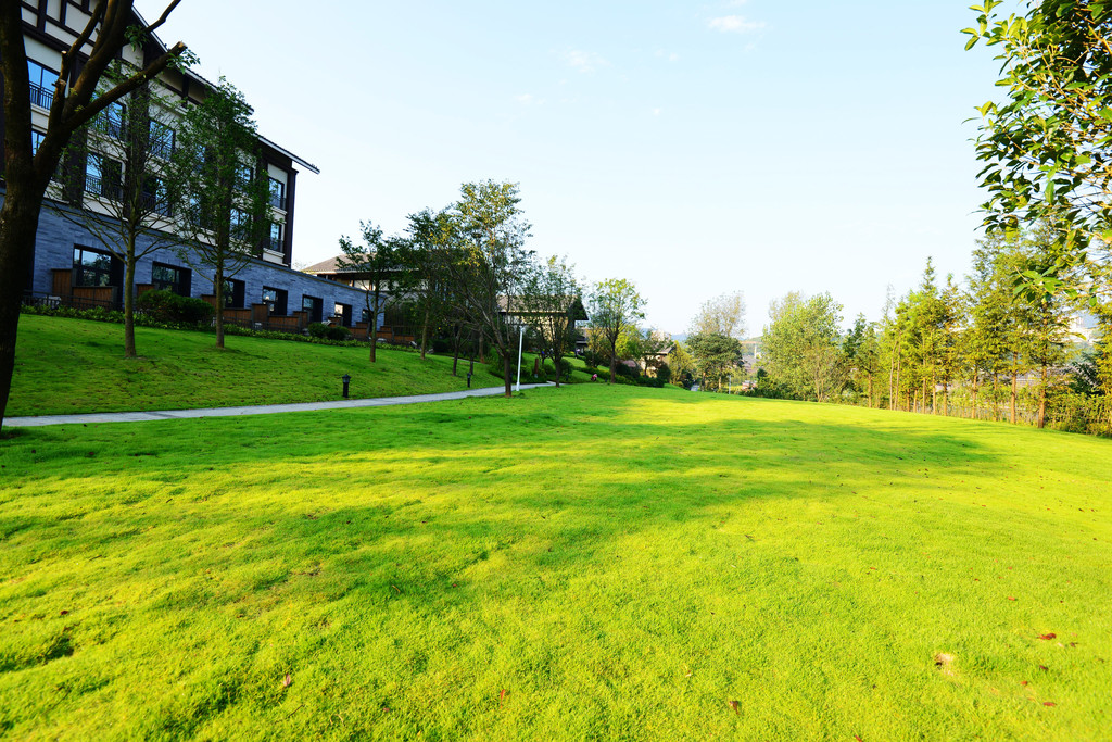 用酒店的说法,这叫后场,后场大片绿油油的草坪,让我顿时来了精神,一个美好的早晨开始了。