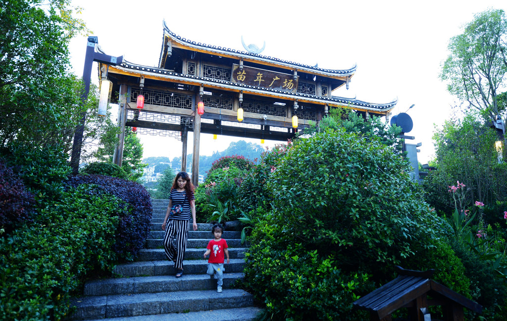 不知不觉走到了第二个广场:苗年广场。苗年是丹寨、雷山县等地苗族群众一年中最为重要的节日,节日期间他们会举行各种活动,如杀年猪、打糯米粑、祭祖、吃“年团饭”、跳芦笙舞、斗牛等,热闹非凡,也是苗族一年中最盛大的传统节日。