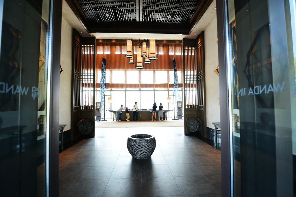 与一般的酒店不同,万达锦华温泉酒店的南侧开设了一家丹调图书馆,邻丹红小院,呈半弧形建筑。
